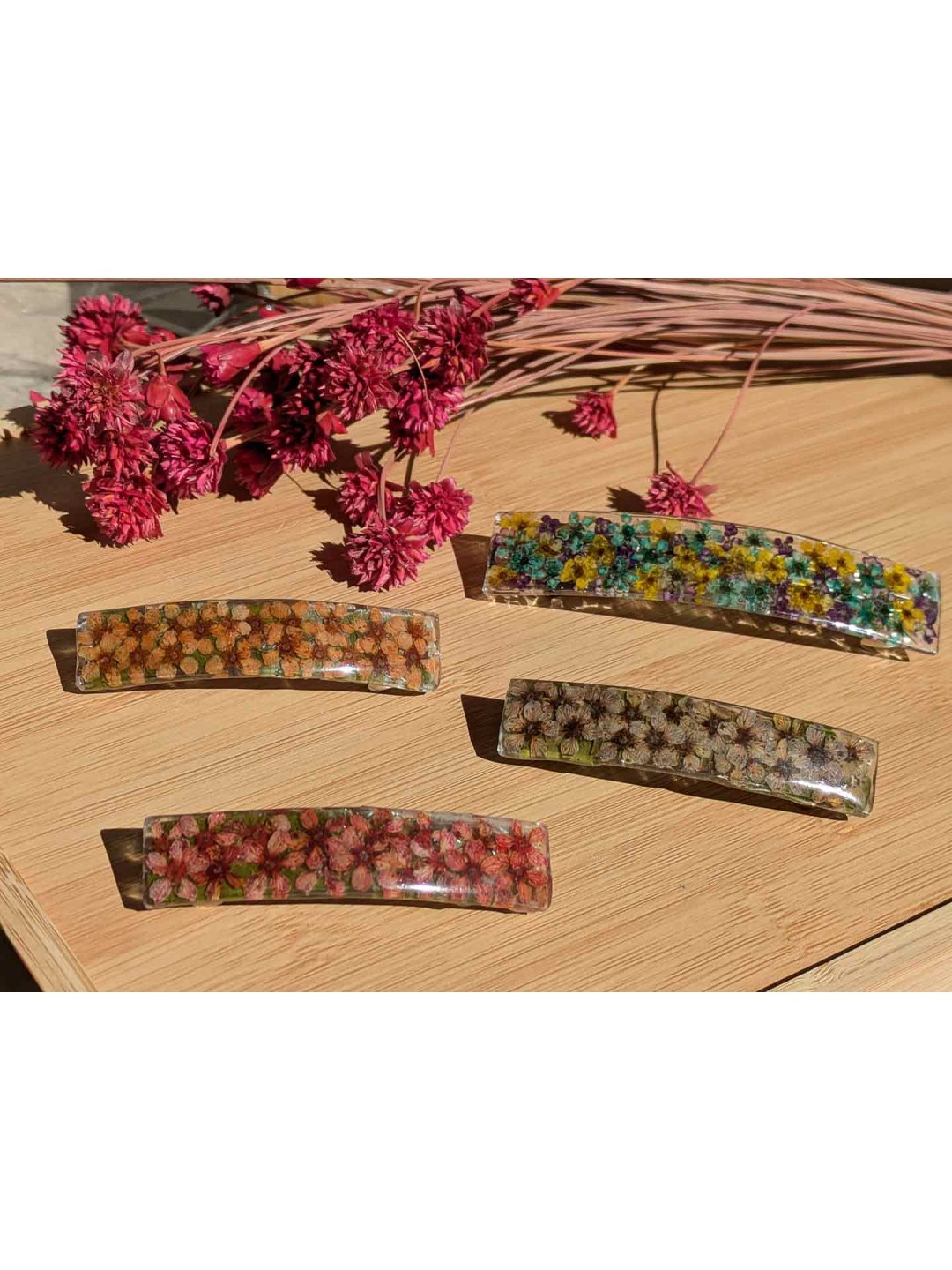 Barrette ou pince en résine fleurs turquoise, jaune, violet