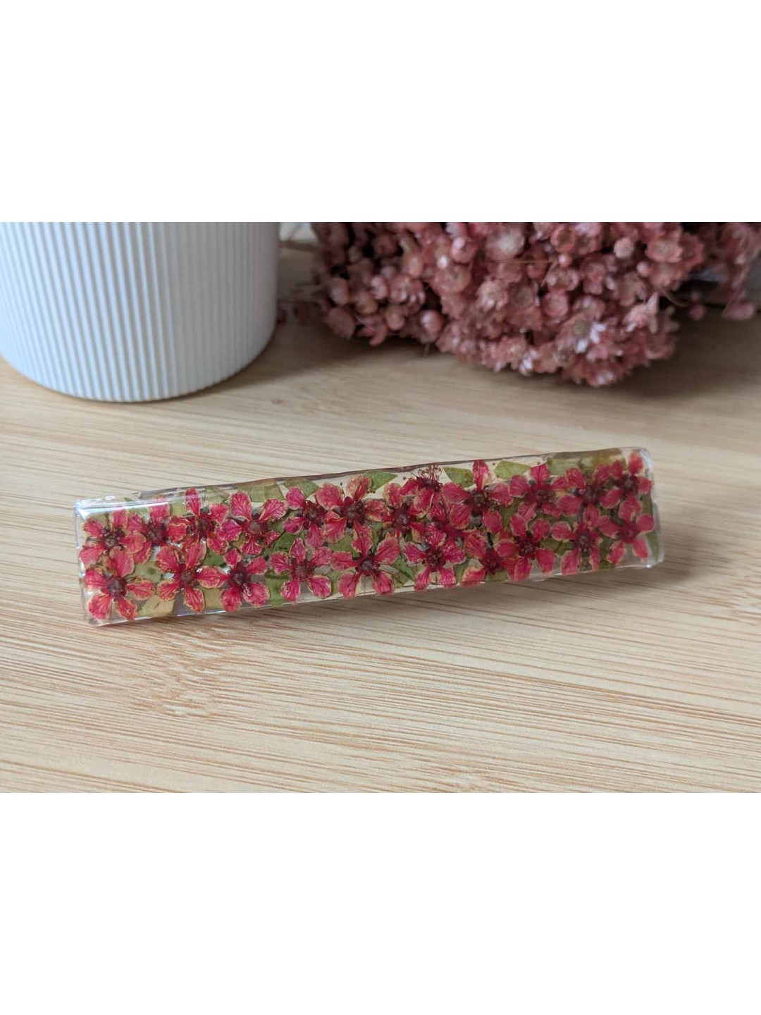 Barrette ou pince en résine fleurs roses